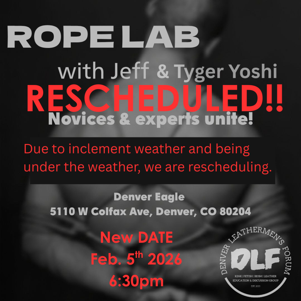 Our program this month will be a rope workshop, facilitated by local rope enthusiasts Jeff and Tyger.